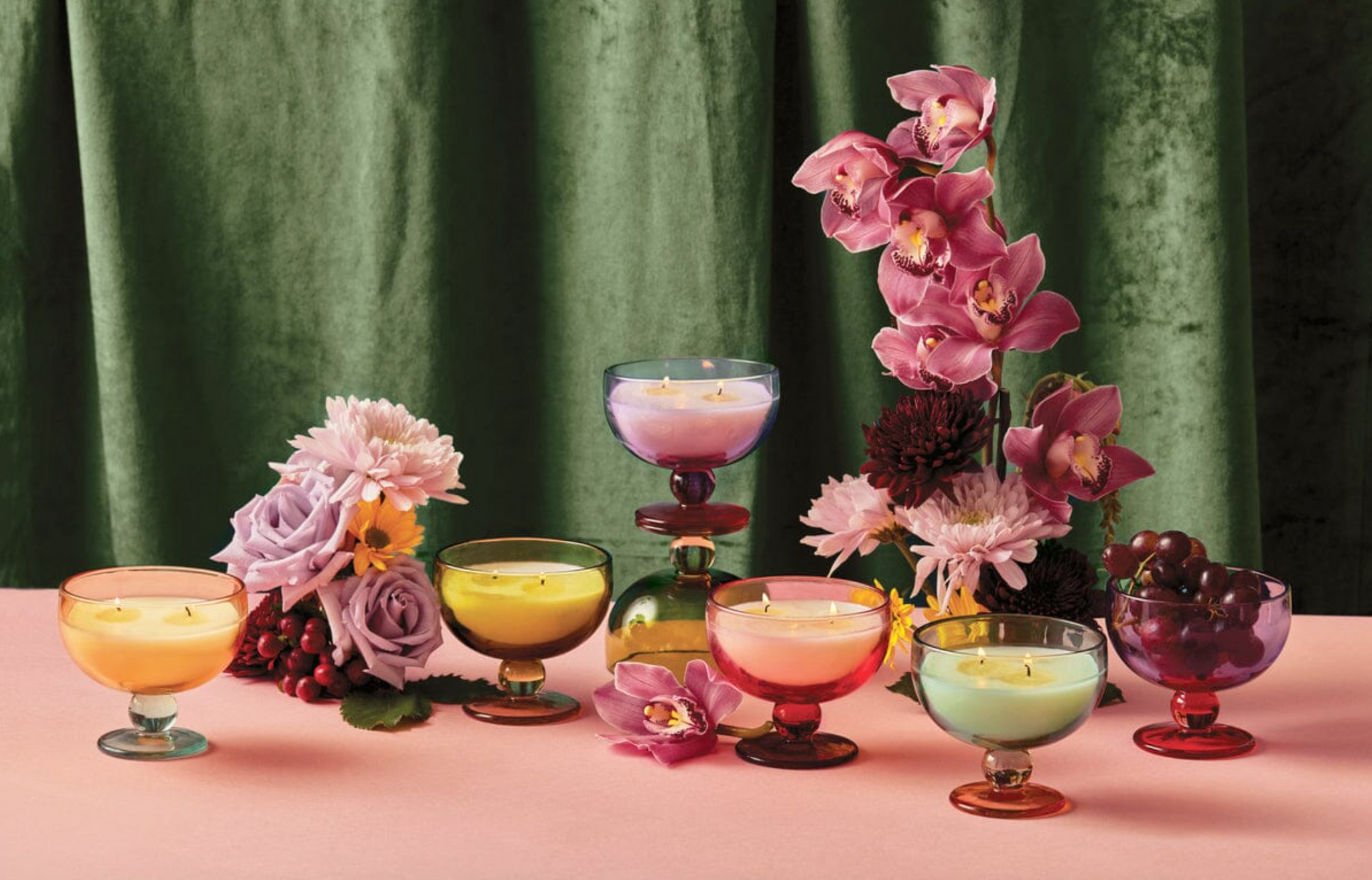 Uplift the atmosphere of any room with the Aura 6 oz. Candle - Pepper Plum. This 2 wick candle is the perfect statement piece for your home with elements of vintage glassware, vibrant jewel tones, and luxurious spiced fragrances.