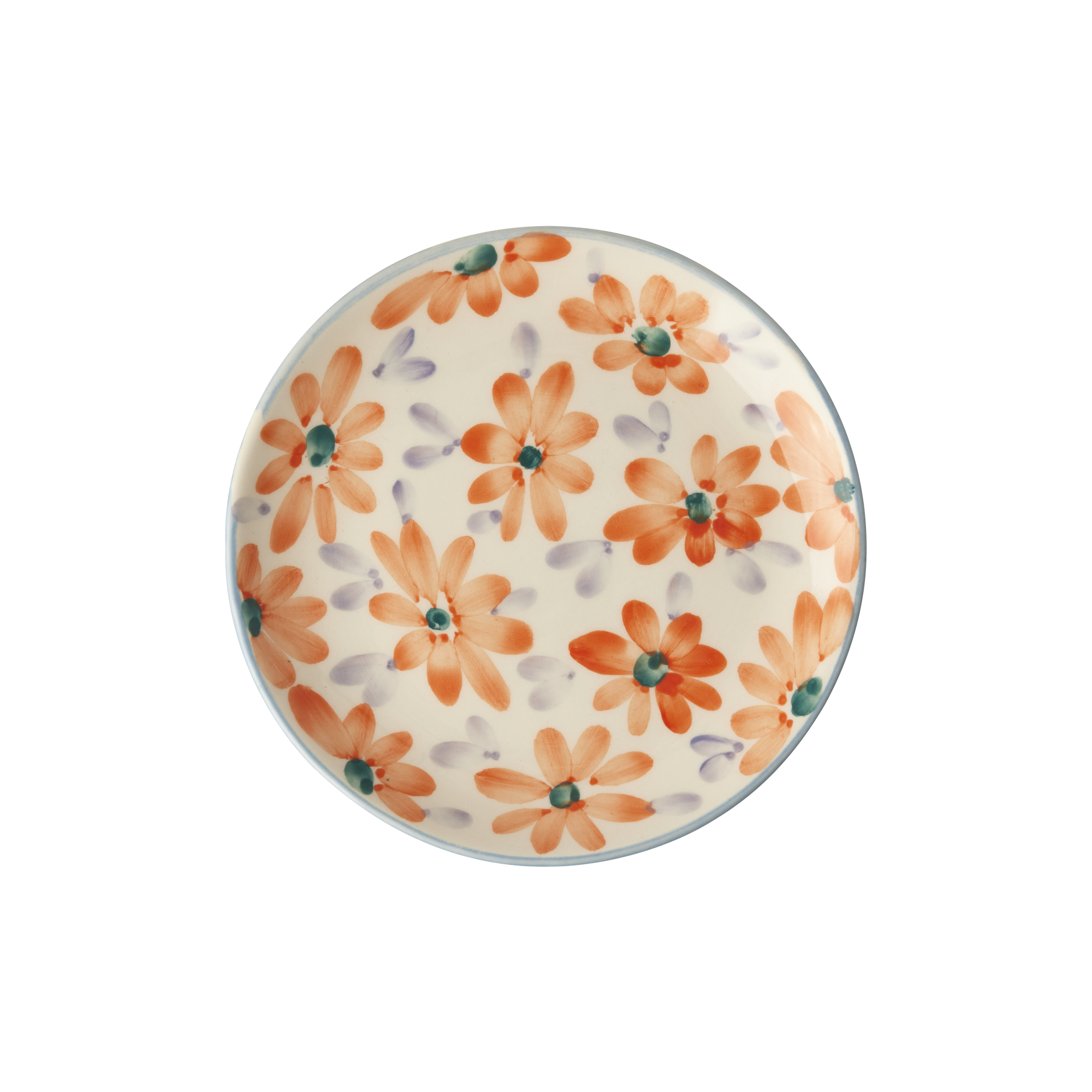 Ceramic Cake Plate with Hand Painted Orange Flowers