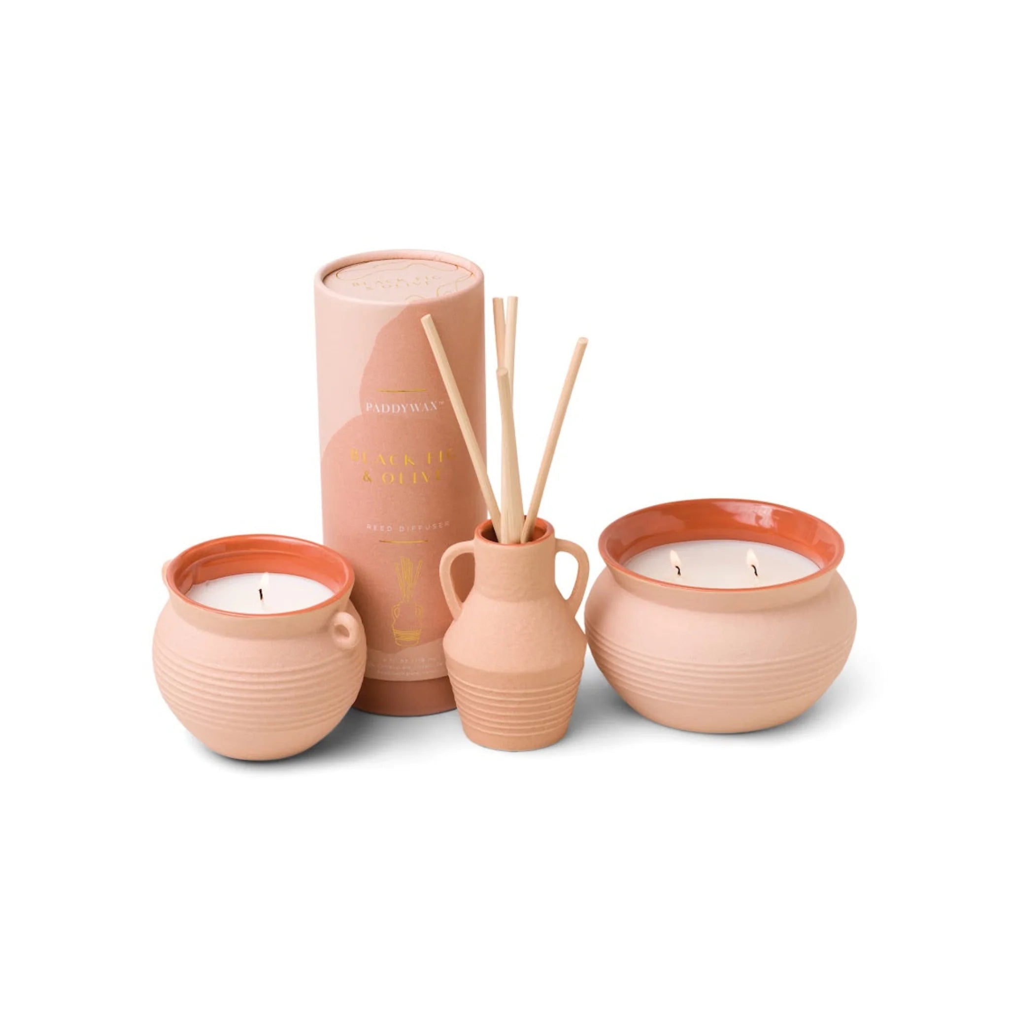 Escape to an island in the Aegean Sea with the Santorini collection. Influenced by timeless texture, this collection will transport you to a volcanic island of pure paradise. This 13 oz candle is hand-poured into a small pottery jug with handles and ribbed details that matches the style and scent of Santorini. After enjoying the Santorini-inspired scents, this unique vessel can be repurposed as a stylish storage vase.